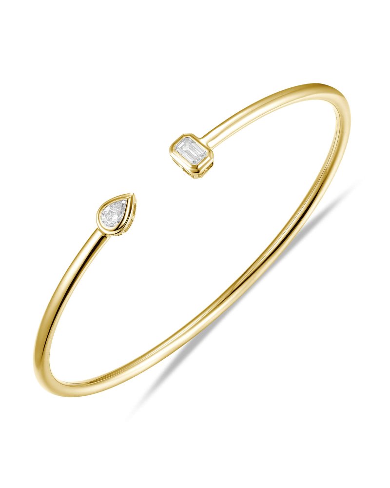 PEAR EMERALD CUT DIAMOND CUFF STYLE BANGLE BRACELET