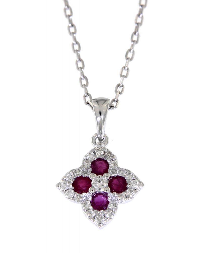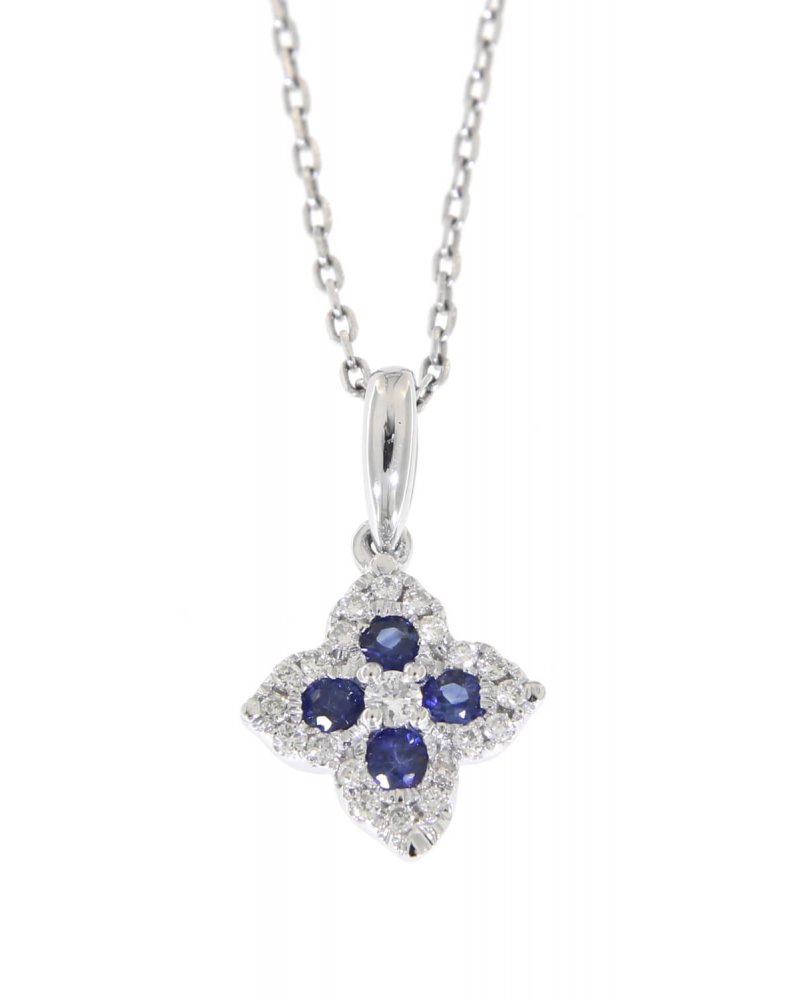 CLOVER STYLE COLORED STONE DIAMOND PENDANT