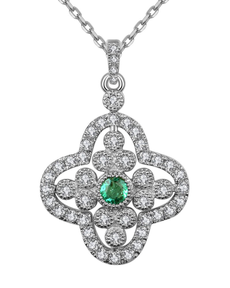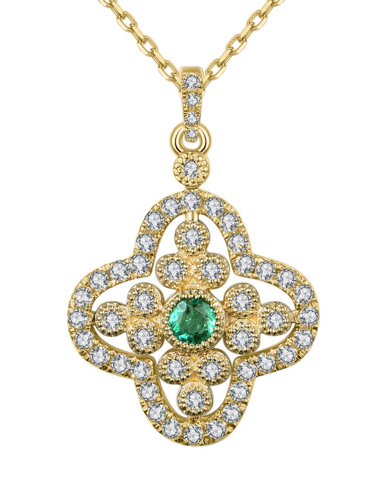 CLOVER STYLE EMERALD DIAMOND PENDANT