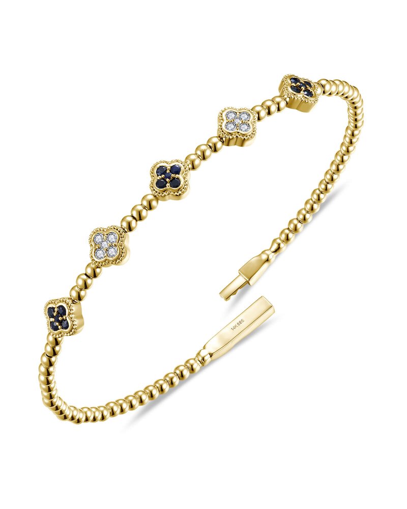 CLOVER STYLE SAPPHIRE DIAMOND FLEXIBLE BANGLE BRACELET
