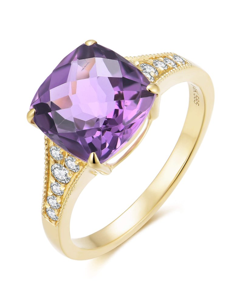 CUSHION AMETHYST DIAMOND RING