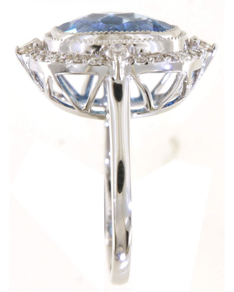 CUSHION SWISS BLUE TOPAZ DIAMOND RING