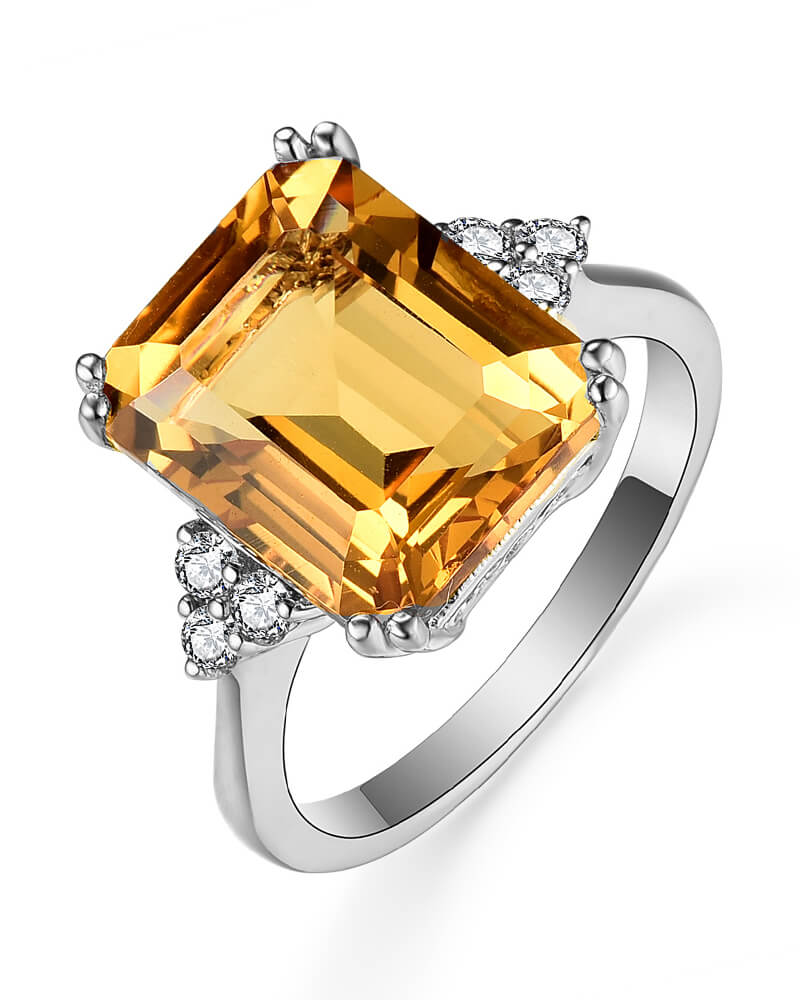 EMERALD CUT CITRINE DIAMOND RING