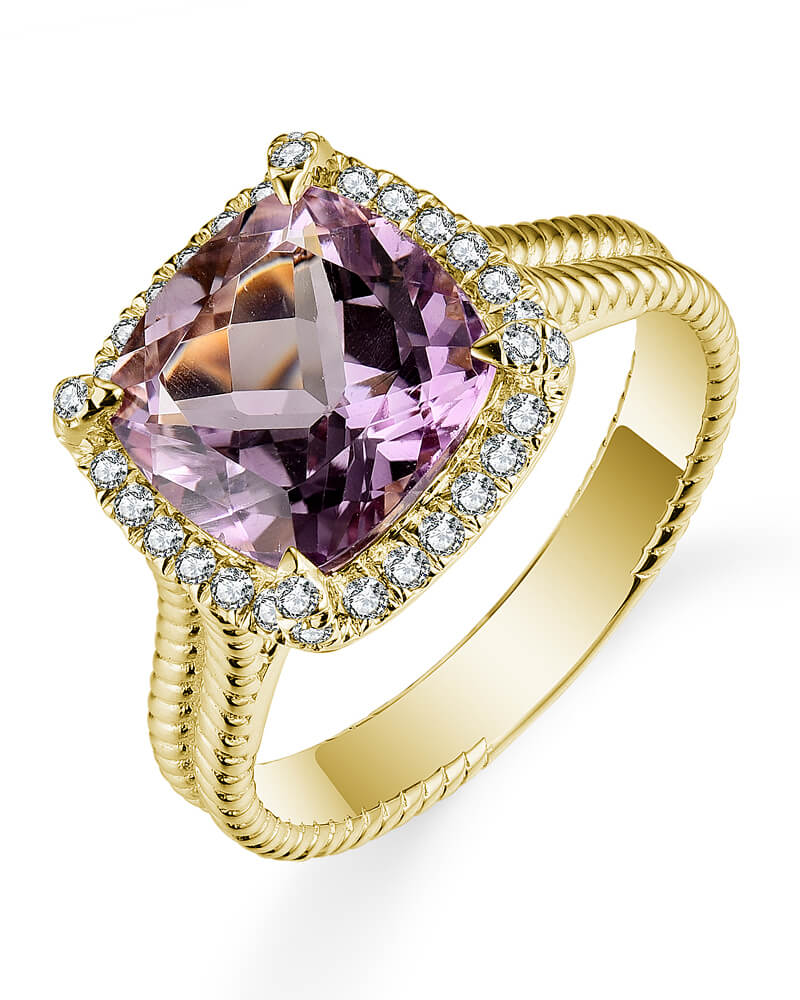 CUSHION AMETHYST DIAMOND RING