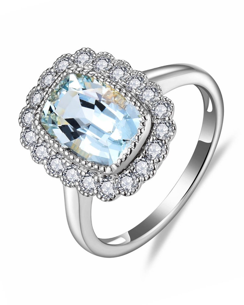 CUSHION AQUAMARINE DIAMOND RING