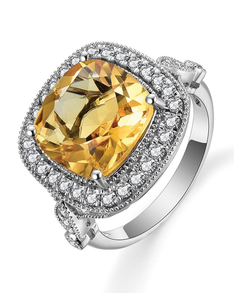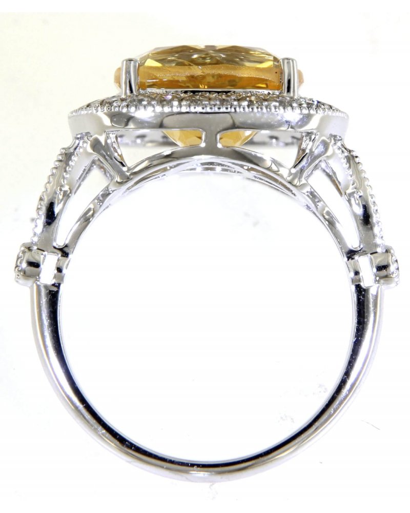 CUSHION CITRINE DIAMOND RING