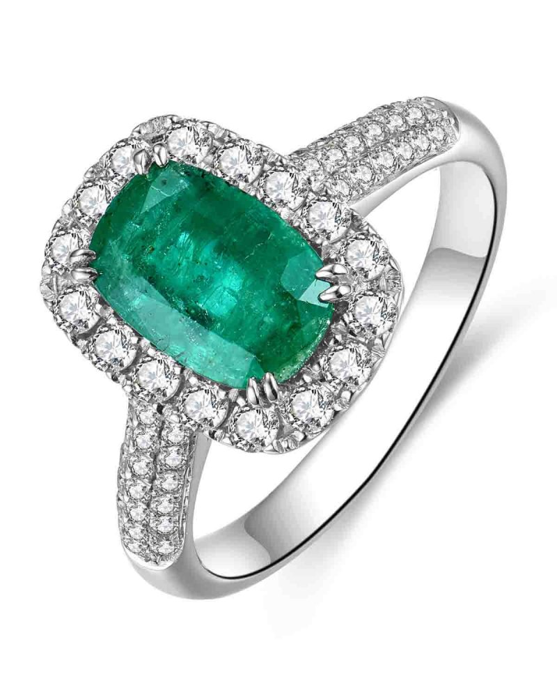 CUSHION EMERALD DIAMOND RING