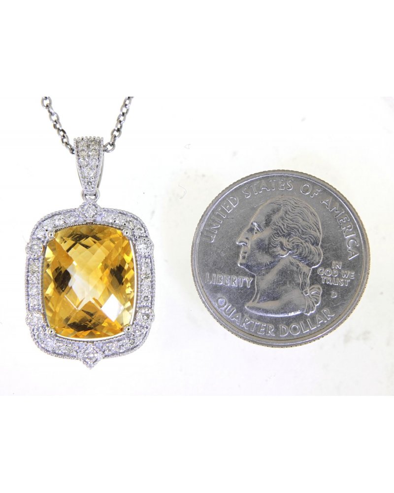 CUSHION SHAPE CITRINE DIAMOND PENDANT