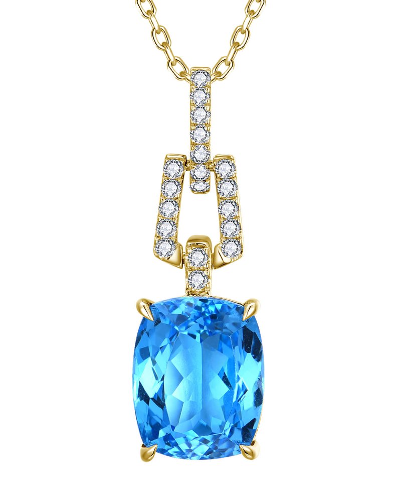 CUSHION SWISS BLUE TOPAZ DIAMOND PENDANT