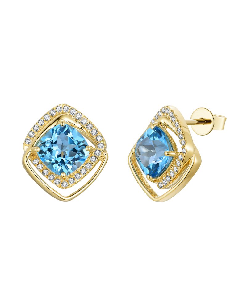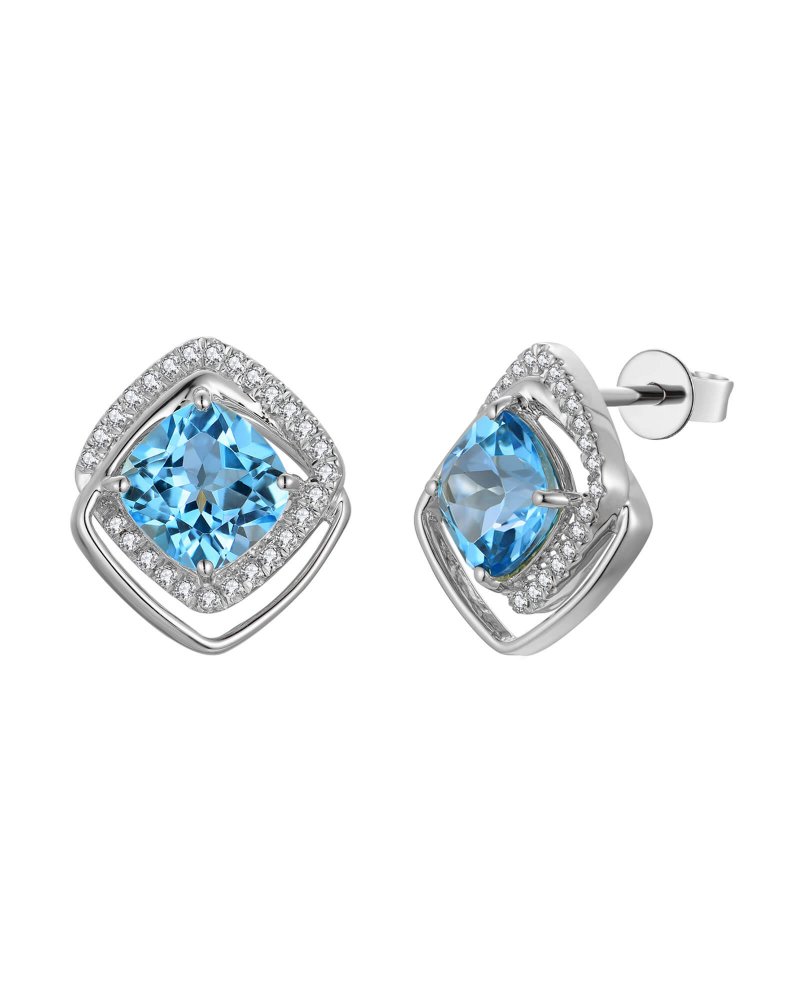 CUSHION SWISS BLUE TOPAZ DIAMOND STUDS