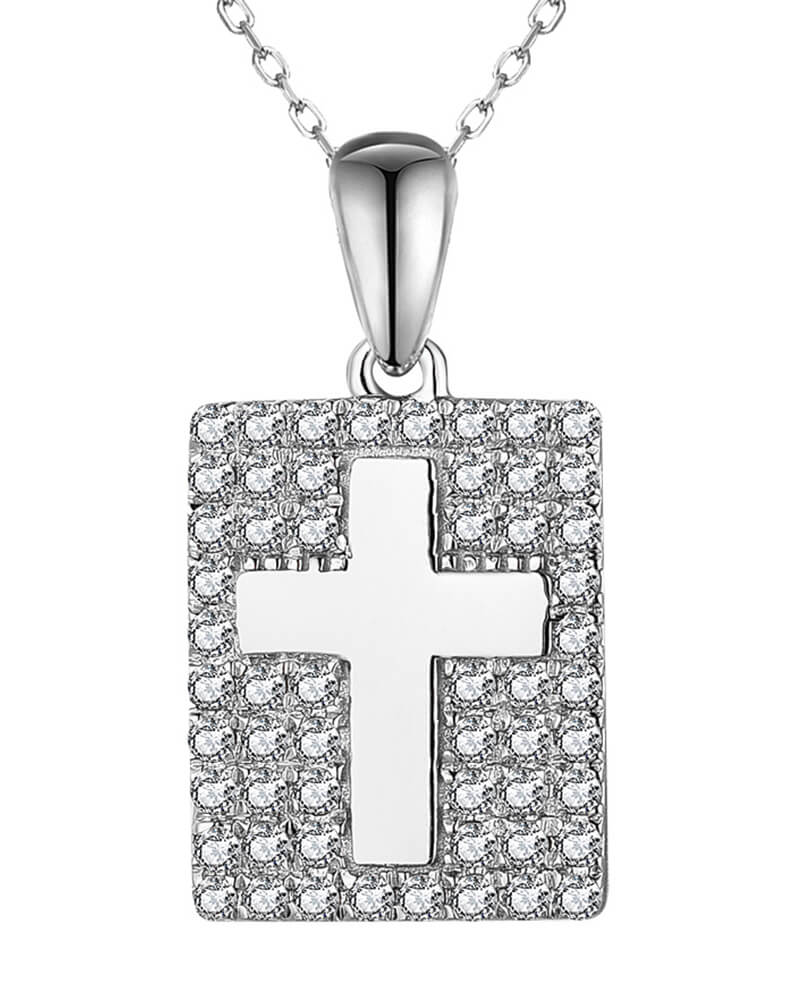DOG TAG STYLE CROSS DIAMOND PENDANT