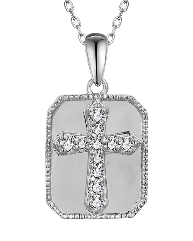 DOG TAG STYLE CROSS DIAMOND PENDANT