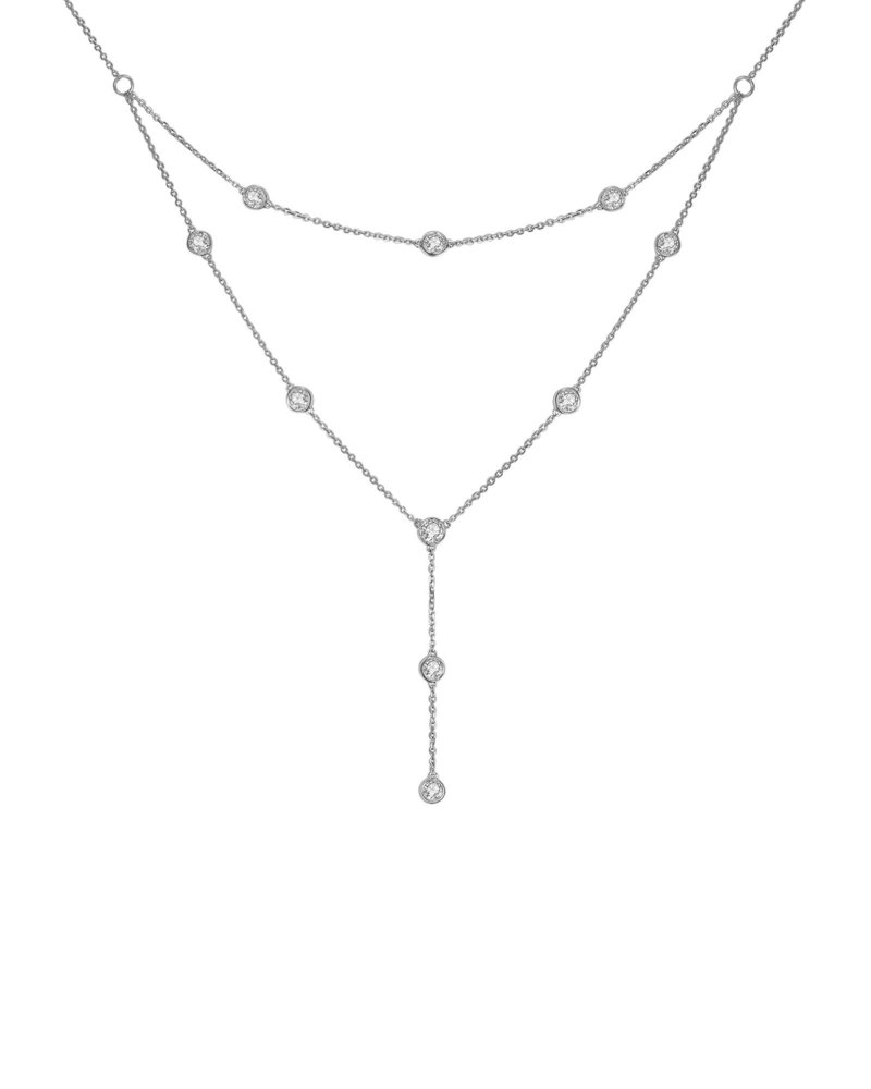 DOUBLE LAYER DIAMOND BY THE YARD DANGLE DROP NECKLACE