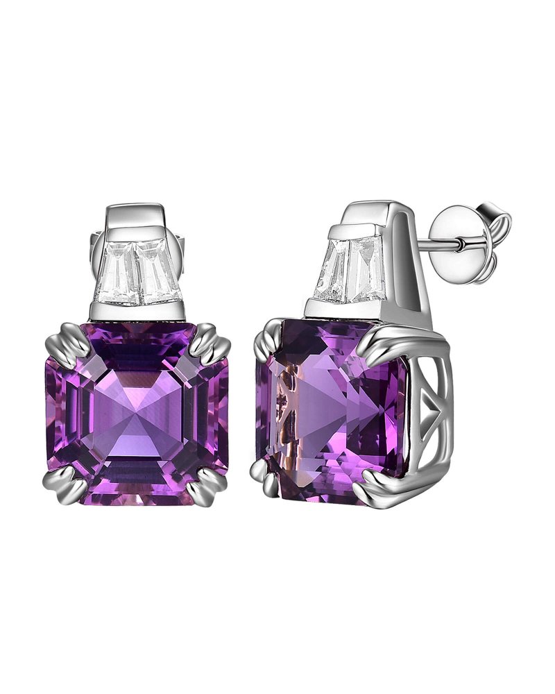 EMERALD CUT AMETHYST DIAMOND STUDS