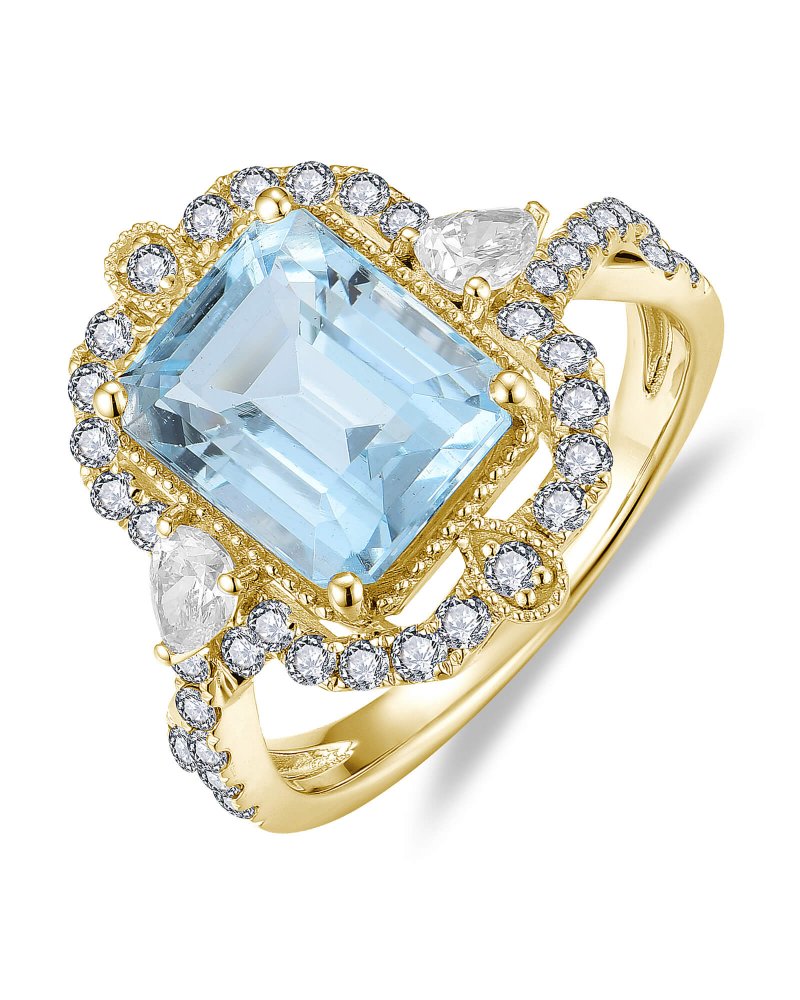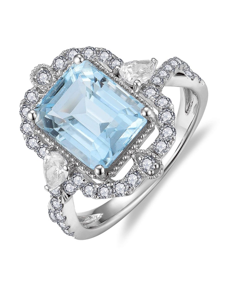 EMERALD CUT AQUAMARINE DIAMOND RING