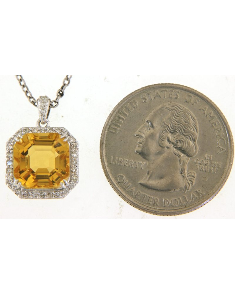 EMERALD CUT CITRINE DIAMOND PENDANT