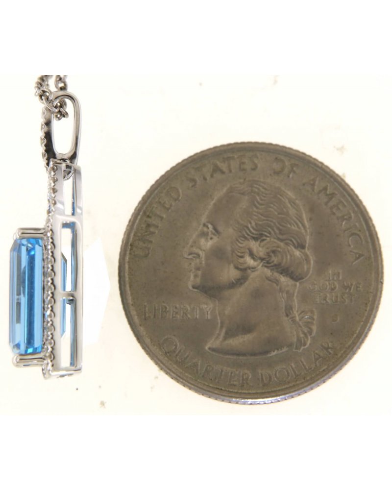 EMERALD CUT LONDON BLUE TOPAZ DIAMOND PENDANT