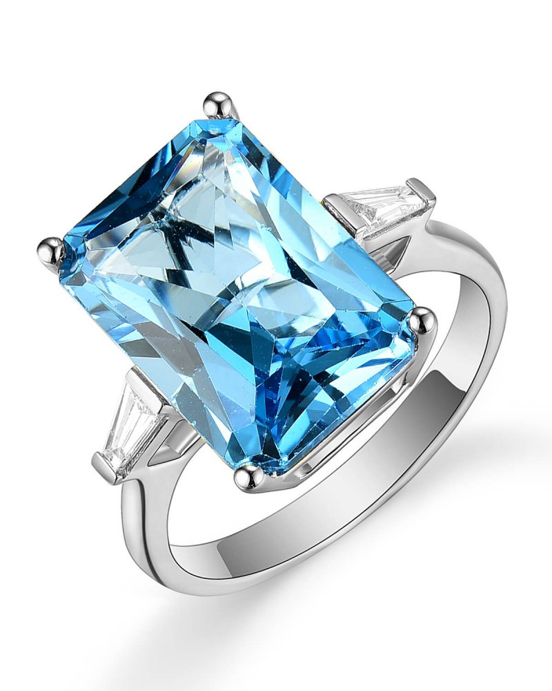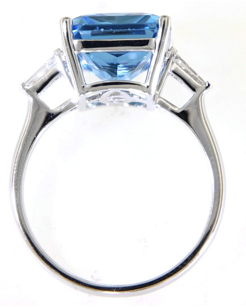 EMERALD CUT SWISS BLUE TOPAZ DIAMOND RING