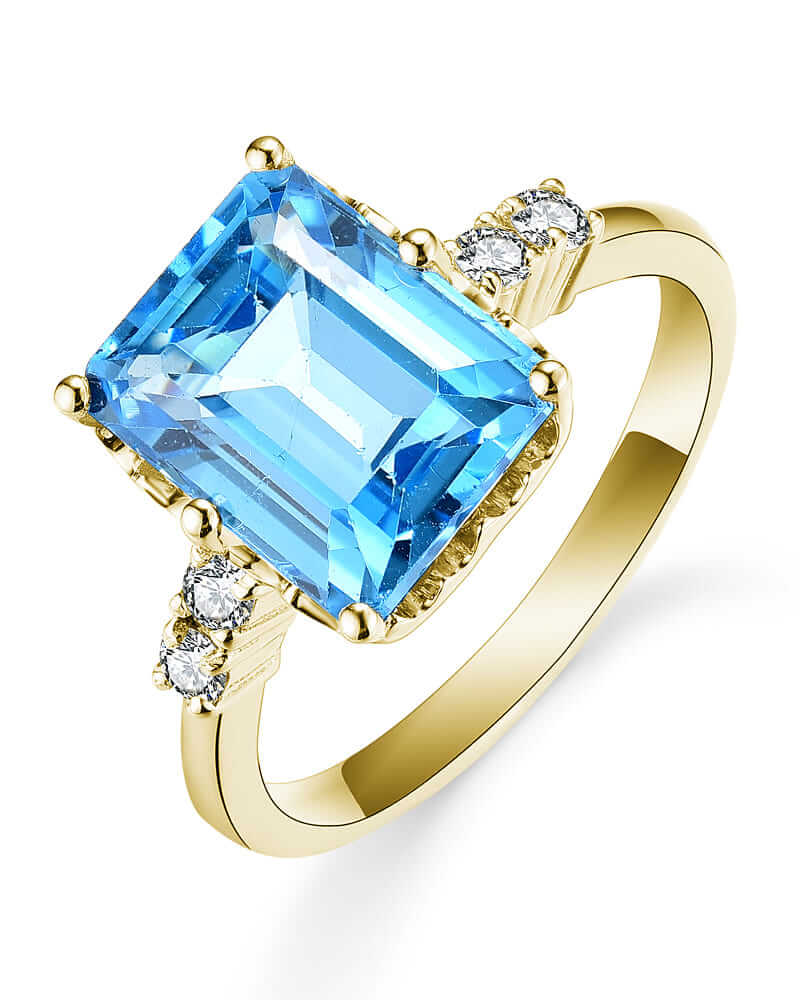 EMERALD CUT SWISS BLUE TOPAZ DIAMOND RING