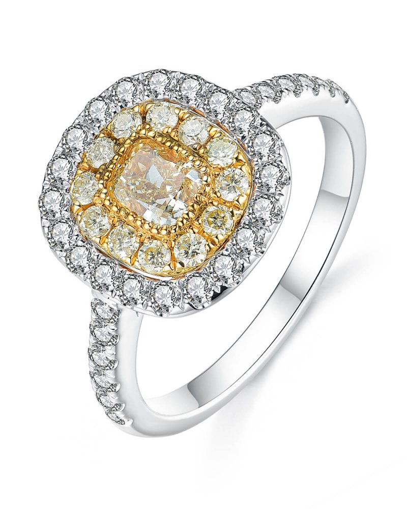 MULTI TONE CUSHION DIAMOND ENGAGEMENT RING