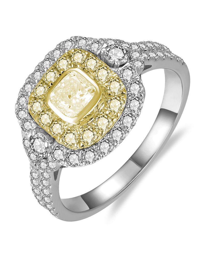 MULTI TONE CUSHION DIAMOND ENGAGEMENT RING
