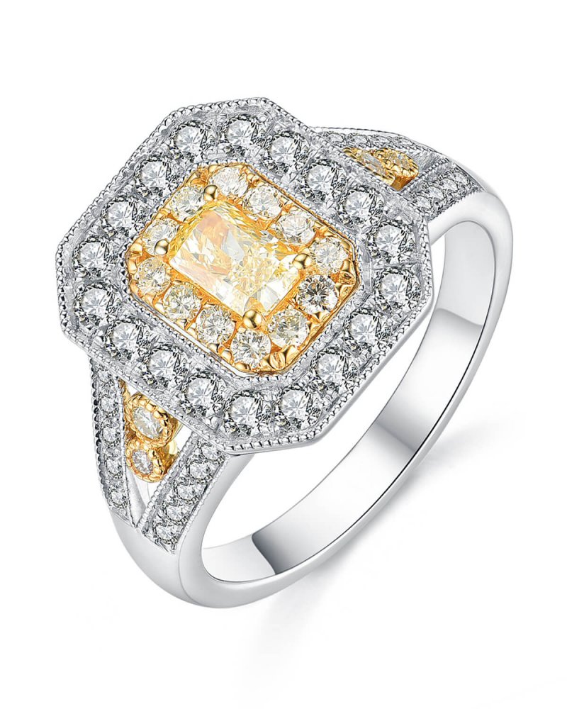 MULTI TONE EMERALD CUT DIAMOND ENGAGEMENT RING