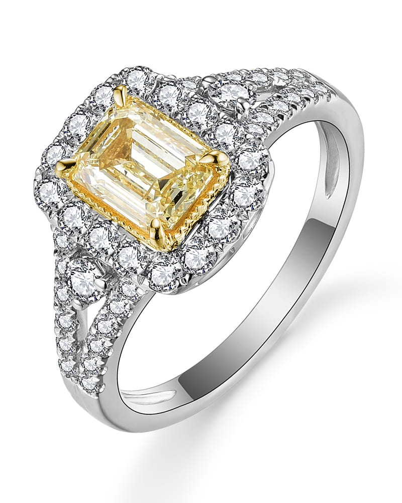 MULTI TONE EMERALD CUT DIAMOND ENGAGEMENT RING