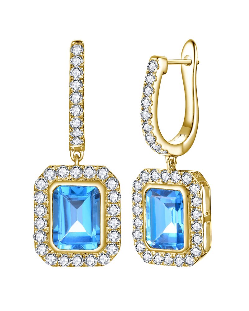 EMERALD CUT SWISS BLUE TOPAZ DIAMOND DANGLING