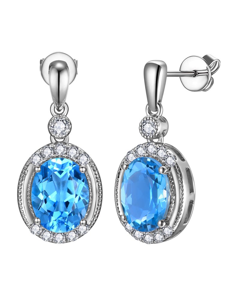 OVAL SWISS BLUE TOPAZ DIAMOND DANGLING