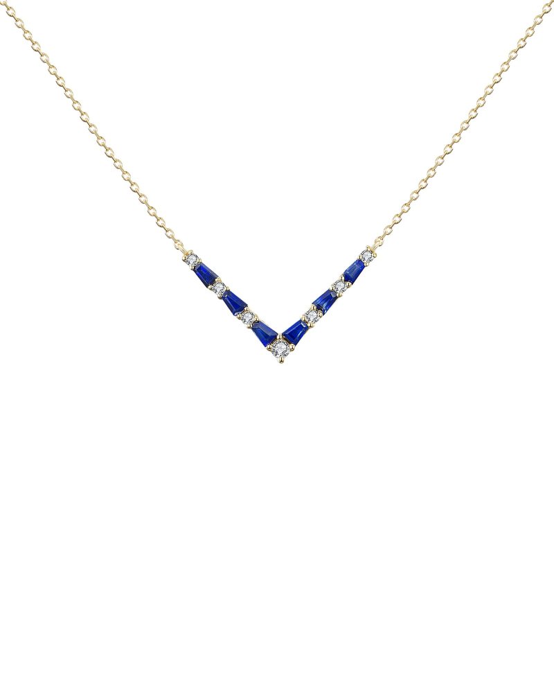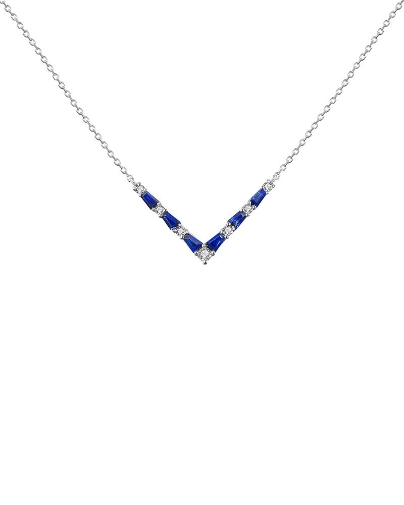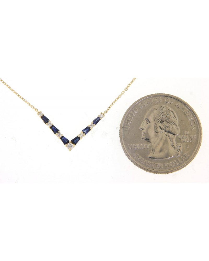 V STYLE BAGUETTE SAPPHIRE DIAMOND NECKLACE