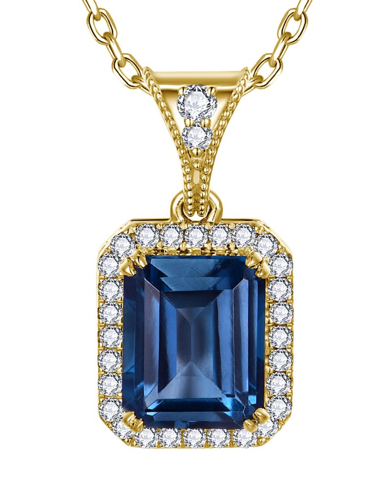 EMERALD CUT LONDON BLUE TOPAZ DIAMOND PENDANT