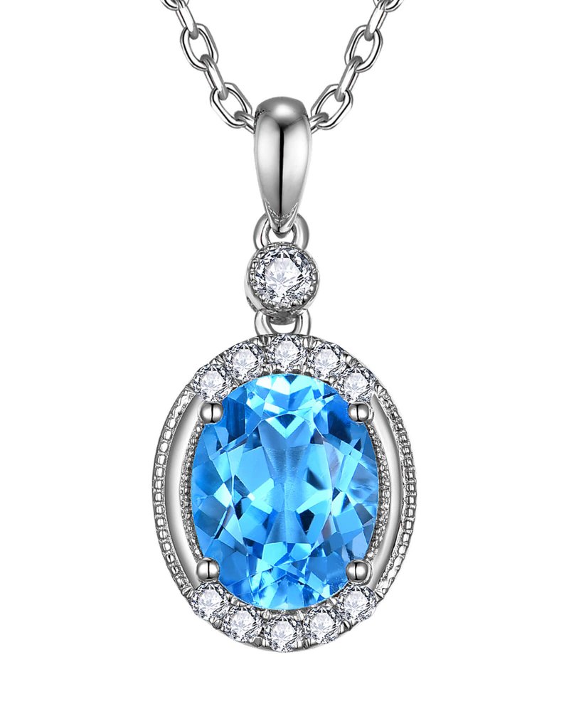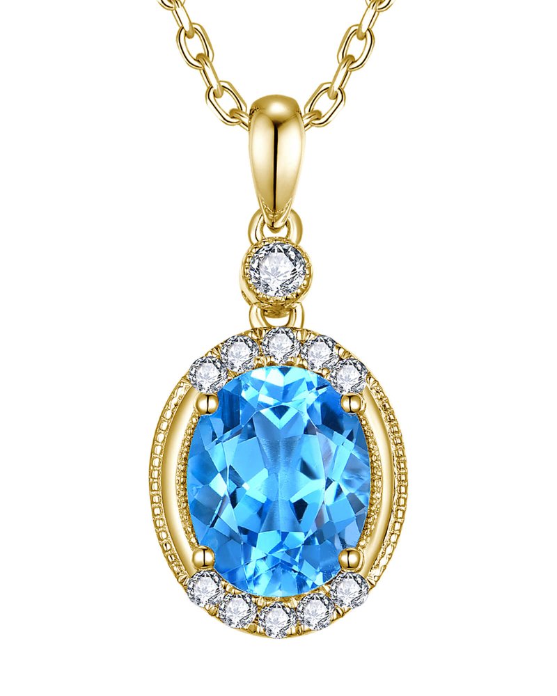 OVAL SWISS BLUE TOPAZ DIAMOND PENDANT