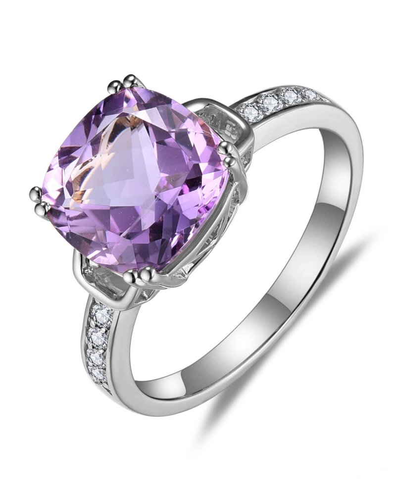 CUSHION AMETHYST DIAMOND RING