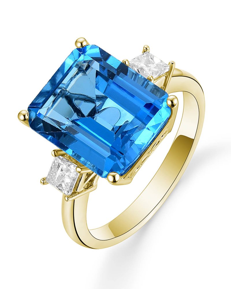 EMERALD CUT SWISS BLUE TOPAZ DIAMOND RING