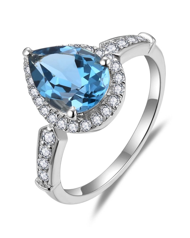 PEAR LONDON BLUE TOPAZ DIAMOND RING