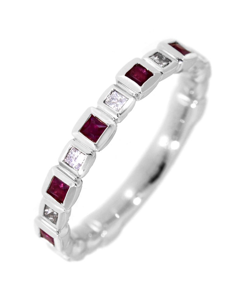 PRINCESS CUT RUBY DIAMOND BAND