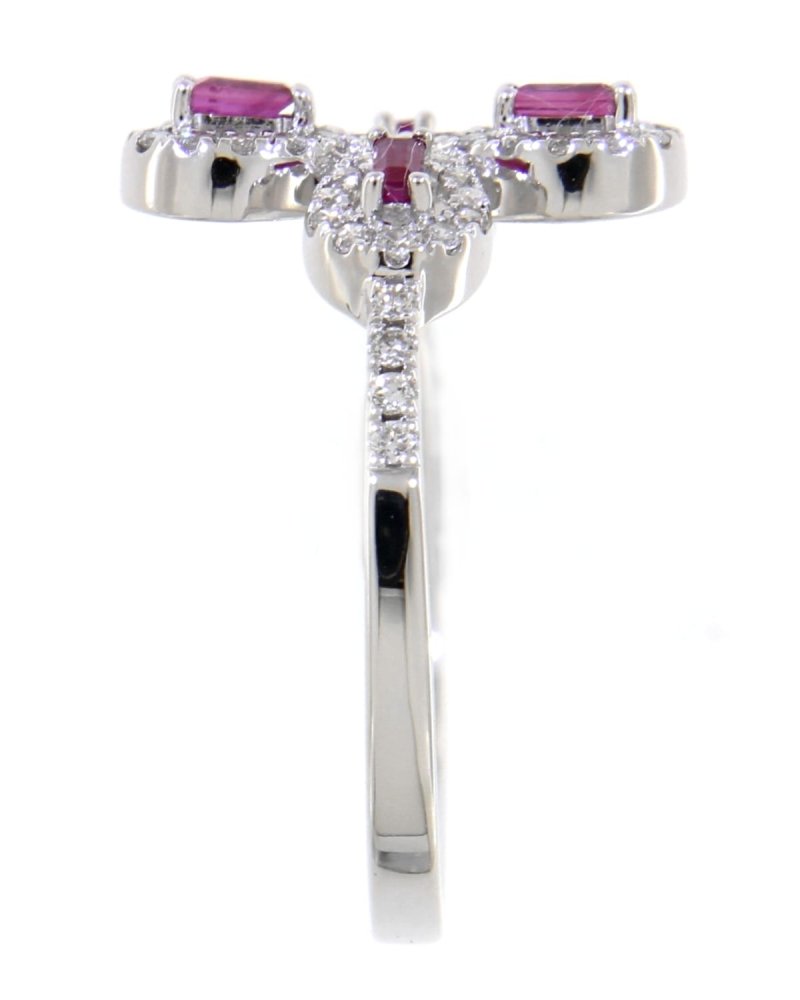 FLORAL STYLE BAGUETTE COLORED STONE DIAMOND RING