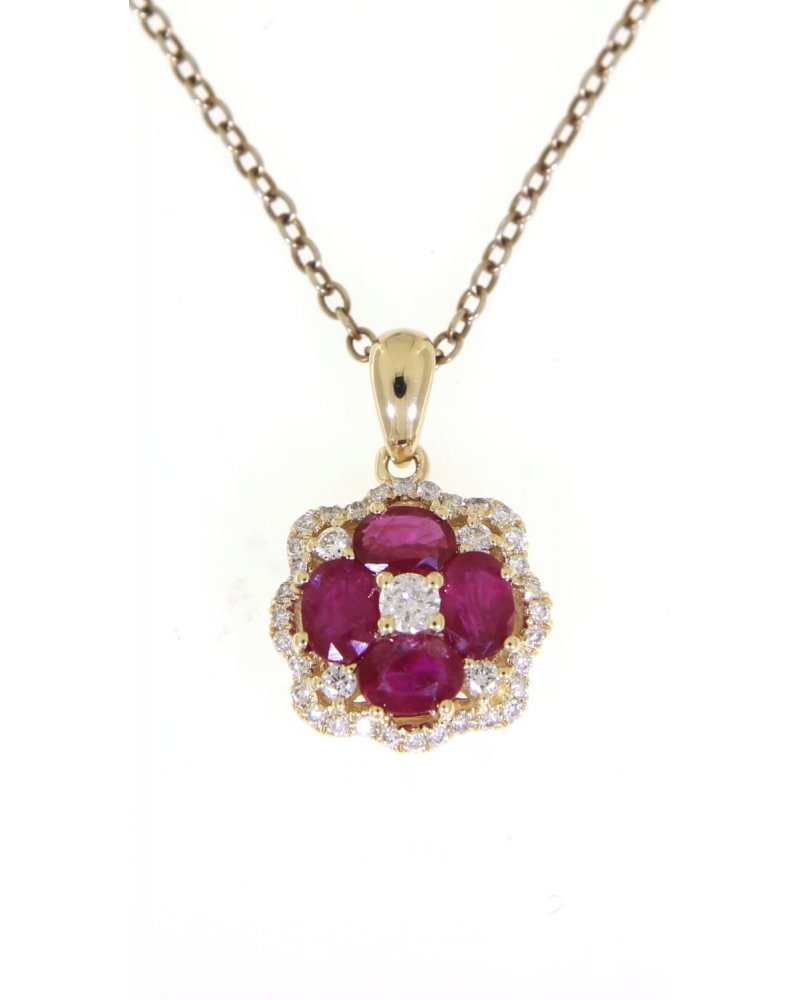FLORAL STYLE COLORED STONE DIAMOND PENDANT
