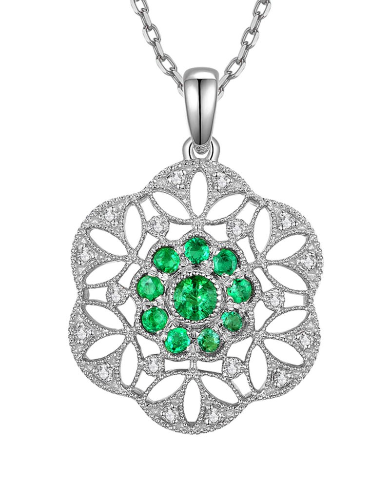 FLORAL STYLE EMERALD DIAMOND PENDANT