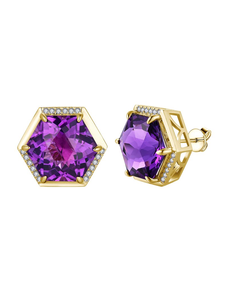 HEXAGON SHAPE AMETHYST DIAMOND STUDS