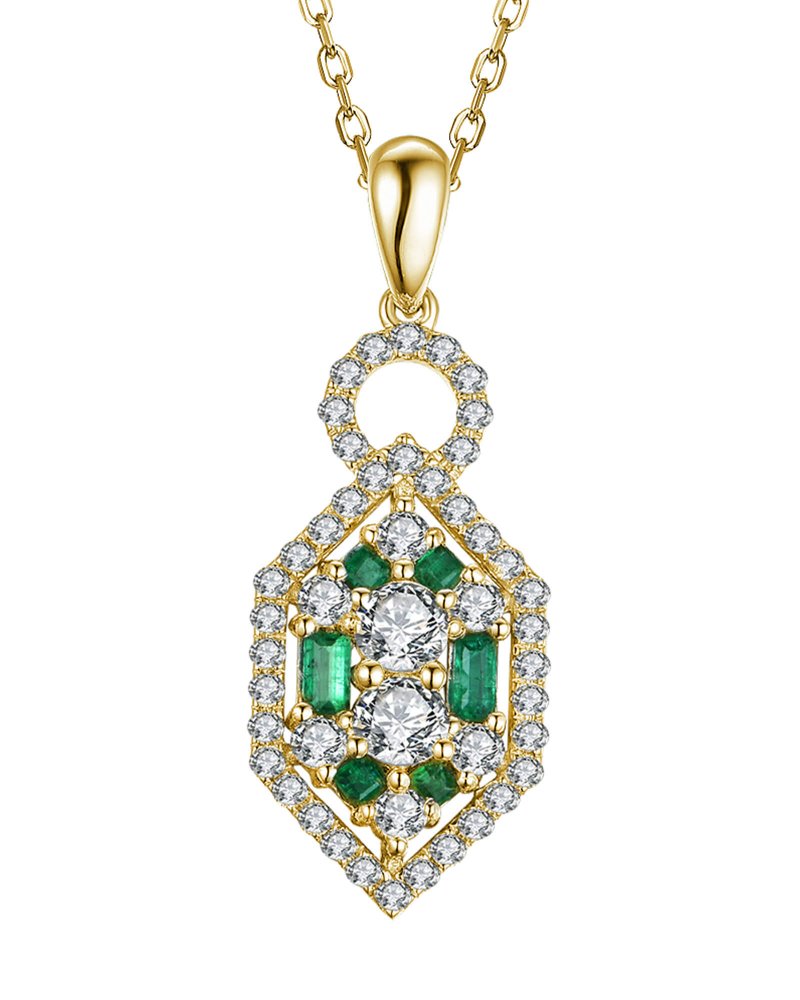 HEXAGON STYLE EMERALD DIAMOND PENDANT