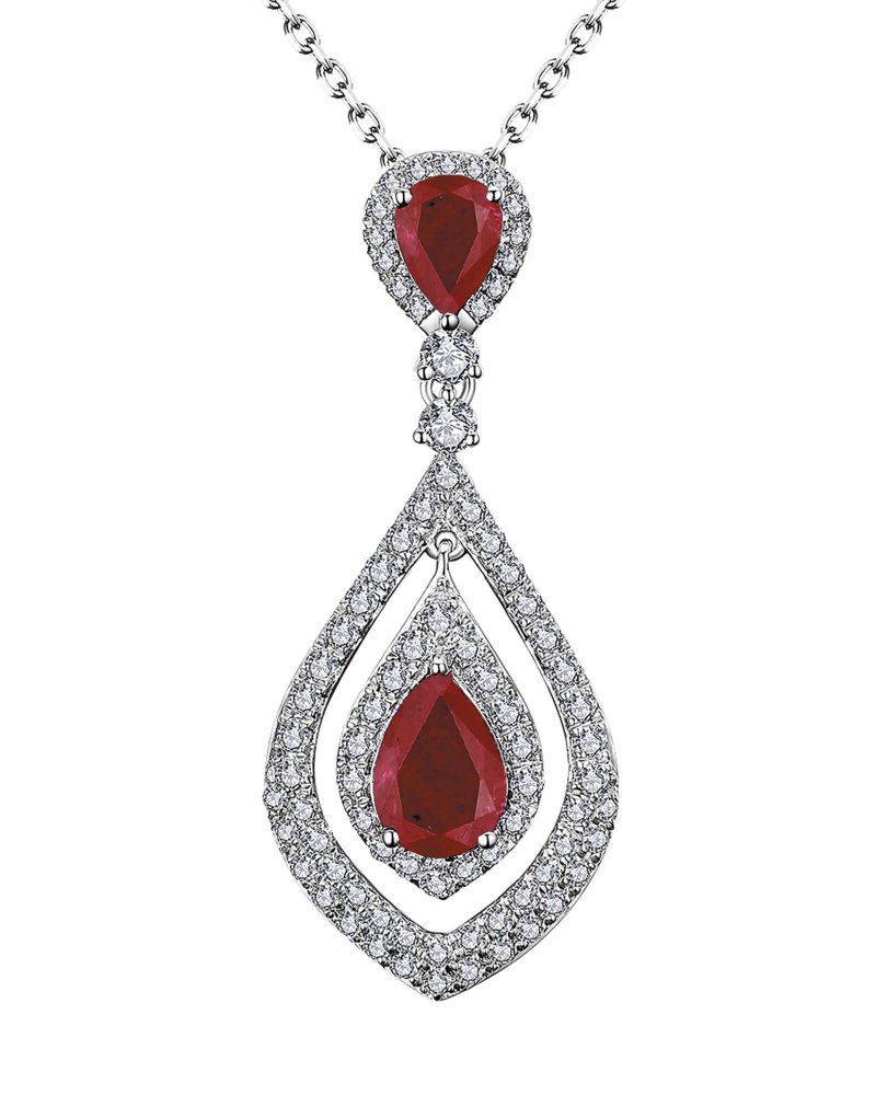 MARQUISE STYLE COLORED STONE DIAMOND PENDANT