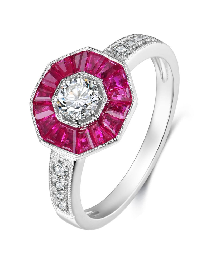 OCTAGON STYLE RUBY DIAMOND RING
