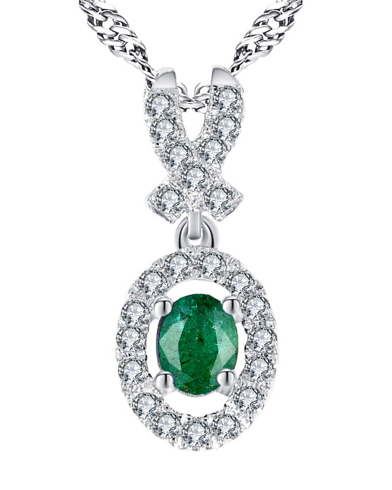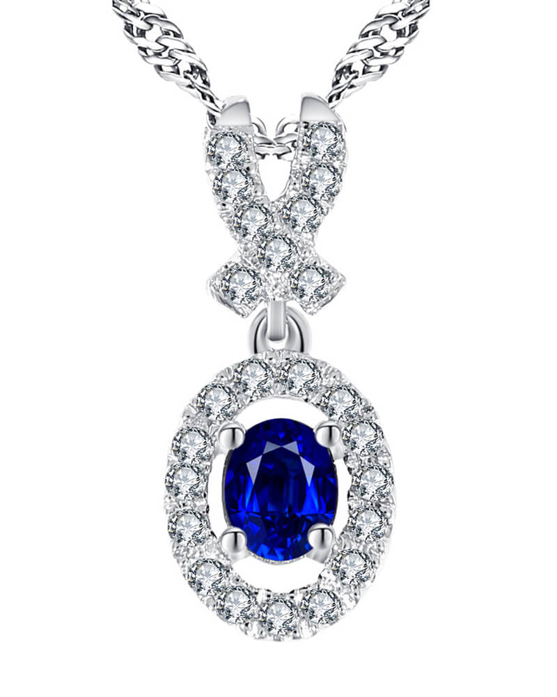 OVAL COLORED STONE DIAMOND PENDANT