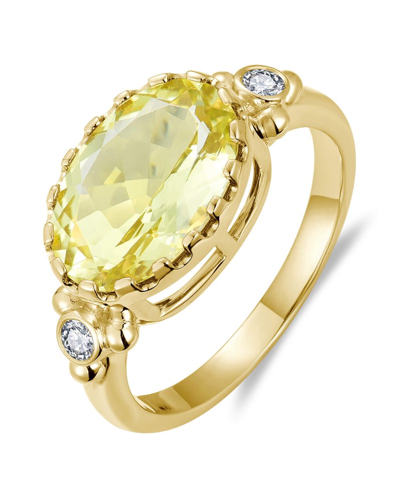 OVAL LEMON QUARTZ DIAMOND RING