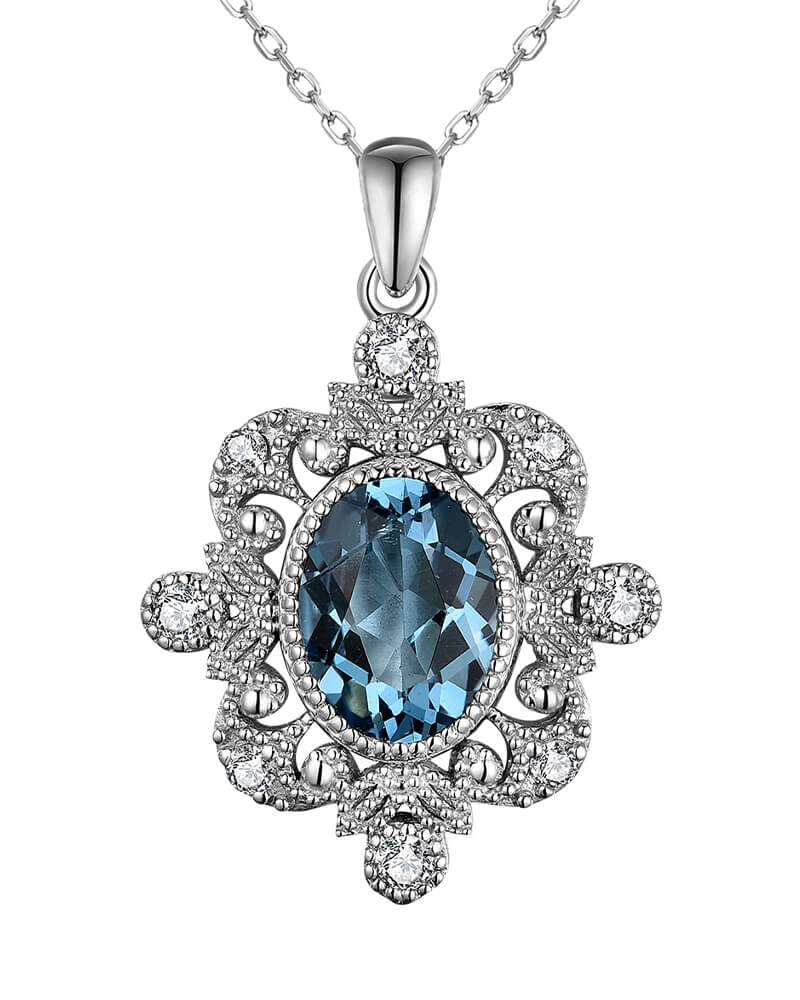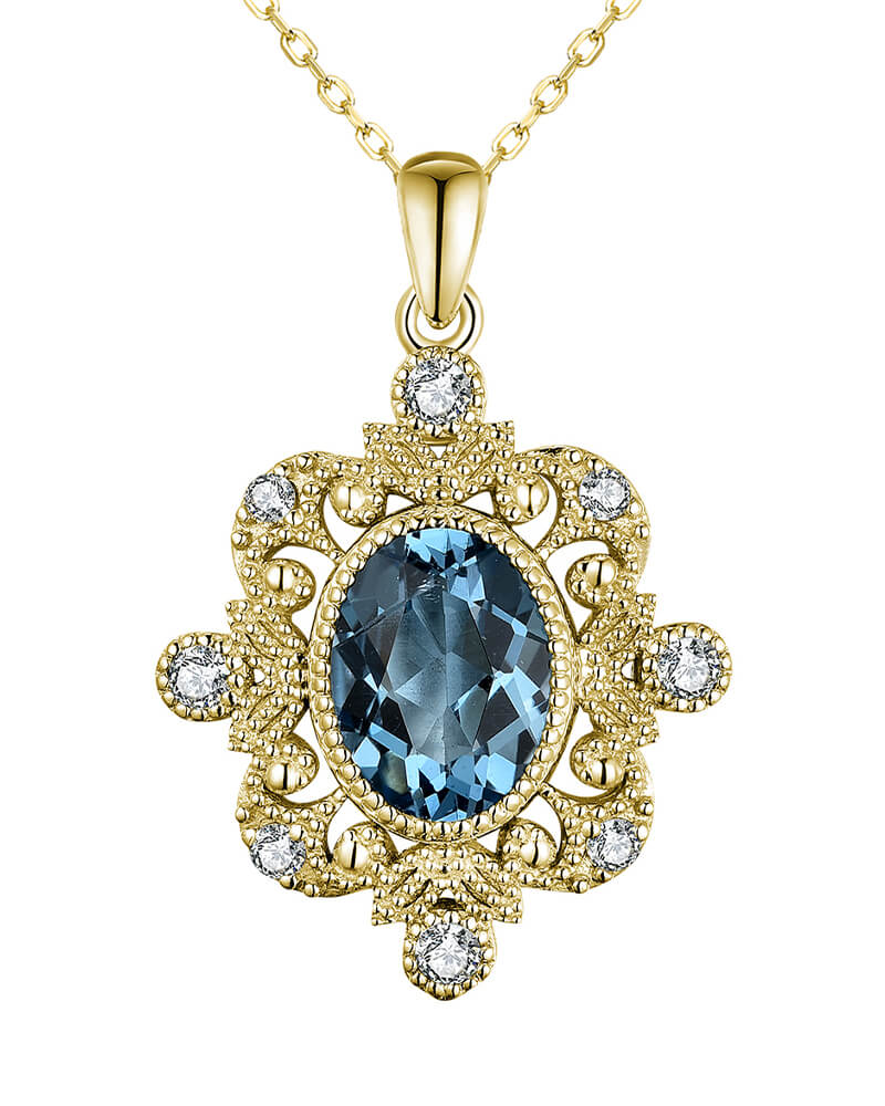 OVAL LONDON BLUE TOPAZ DIAMOND PENDANT