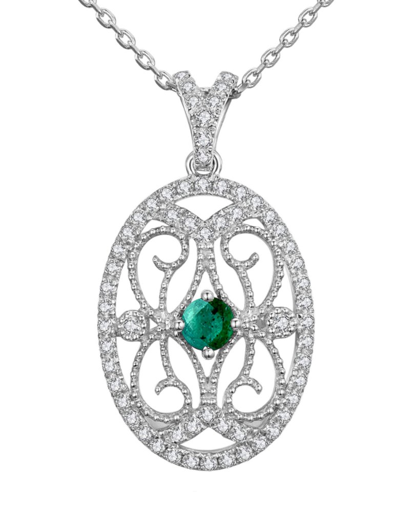 OVAL STYLE COLORED STONE DIAMOND PENDANT