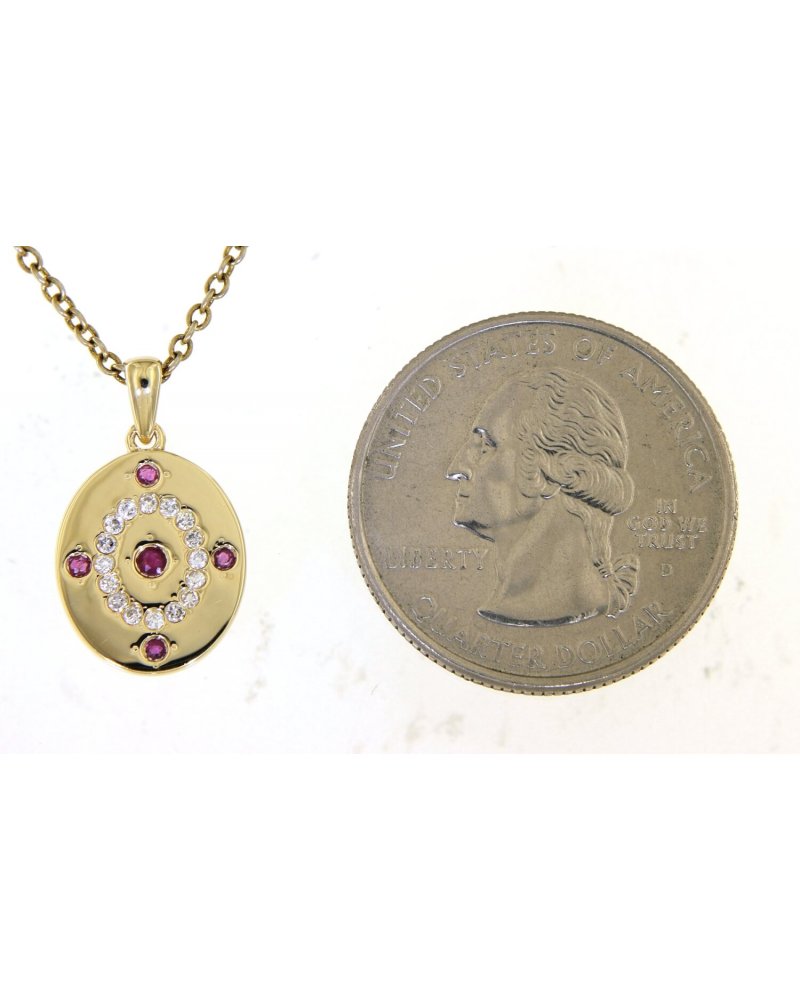 OVAL STYLE COLORED STONE DIAMOND PENDANT
