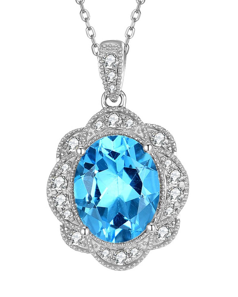 OVAL SWISS BLUE TOPAZ DIAMOND PENDANT