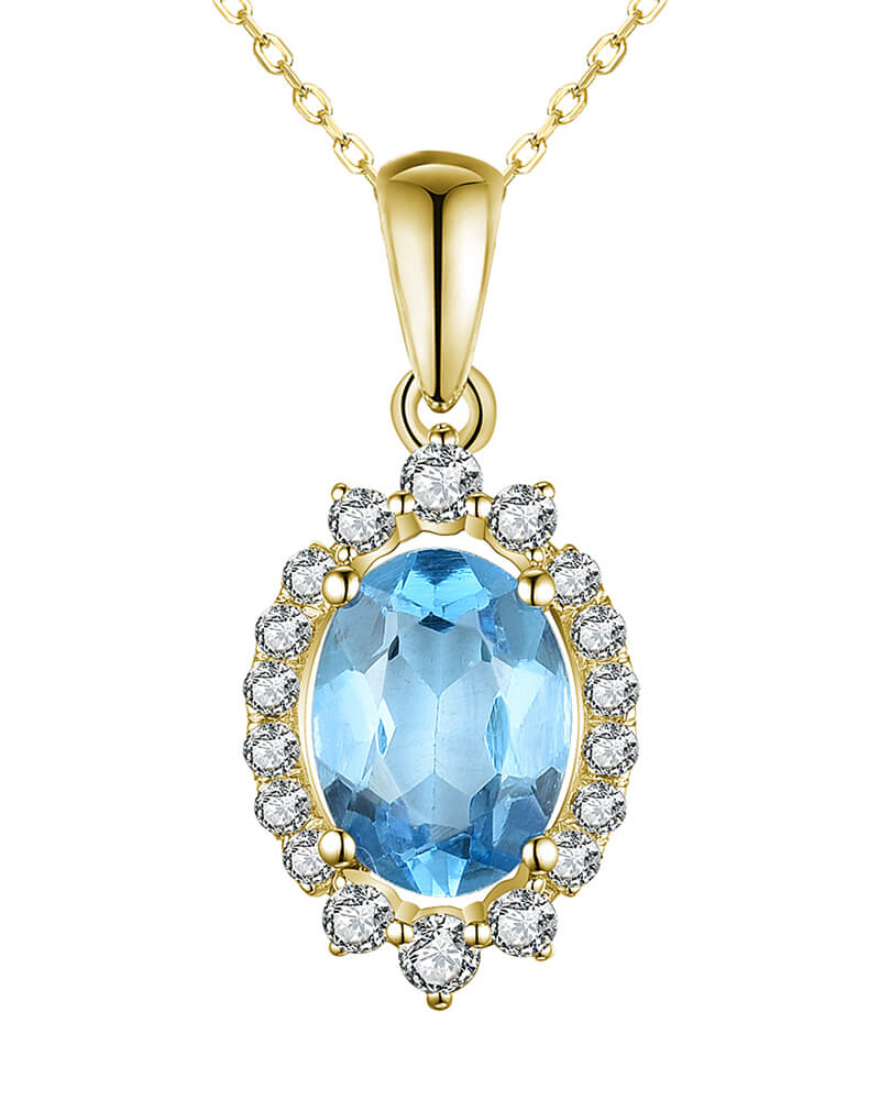 OVAL SWISS BLUE TOPAZ DIAMOND PENDANT